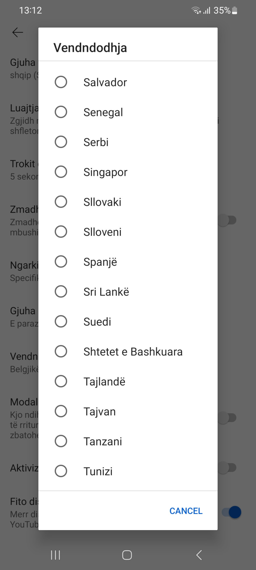 Shtimi i Shqiperise ne listen e vendeve ku perdoruesit e YouTube zgjedhin lokacionin